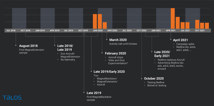 Cisco Talos attributed the malware payloads to an unknown actor that goes by the alias “magnat,” noting that “these two families have been subject to constant development and improvement by their authors.”