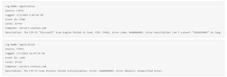 The issue began to gain attention as the year 2022 kicked in, causing the servers to no longer deliver email messages while throwing the following error message: “The FIP-FS ‘Microsoft’ Scan Engine failed to load. PID: 23092, Error Code: 0x80004005. Error Description: Can’t convert ‘2201010001’ to long.”